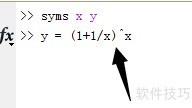 4、 输入函数表达式,如 y = (1 + 1/x)^x。