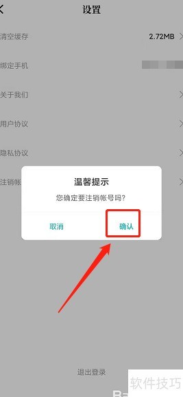 8、 进入注销提示页面,点击确认按钮即可。