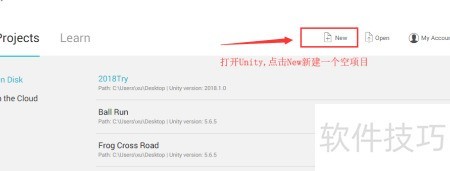 1、 新建或打开一个Unity项目,建议选择新建。
