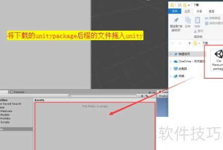 2、 把资源包文件拖拽到Unity项目窗口中即可完成导入操作。
