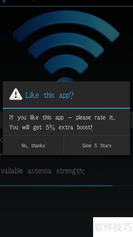 8、 当出现如果你喜欢本应用,请给予评分,即可获得额外5%的加速效果!提示时,意味着用户在为该APP评分后,可额外提升5%的Wi-Fi信号强度,增强网络连接性能,从而获得更流畅的使用体验,鼓励用户参与评价以获取这一实用功能奖励。