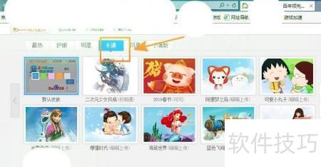 5、 若想选择卡通风格的皮肤背景,点击卡通分类即可。