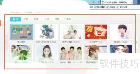 3、 在浏览器主页右上方点击换肤选项即可更换皮肤。