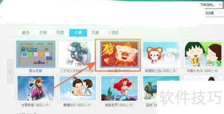 6、 卡通区域提供丰富背景图片,只需点击即可选择心仪的皮肤样式。
