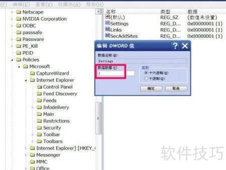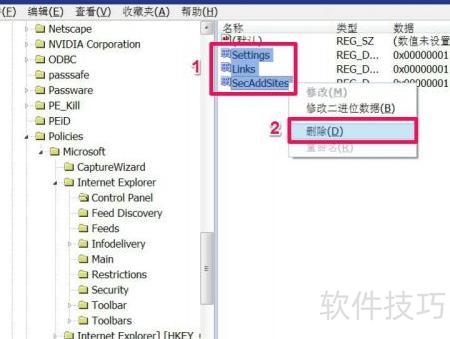 9、 除了此项之外,其余两项Links=dword:1和SecAddSites=dword:1也需采用相同方法,将数值均改为0,或直接删除这两项。完成设置后,即可对IE浏览器的主页进行修改,操作简单便捷,按步骤进行即可生效。