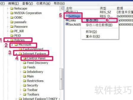 5、 接着,按照指定路径定位到右侧的Settings选项,随后在弹出的右键菜单中点击修改进行操作。此步骤用于调整相关配置,确保设置符合实际需求,操作时需仔细核对选项内容,避免误改其他参数,以保证系统或程序正常运行。
