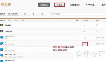 2、 第二步,登录wed主控端后进入我的控制台,所示。点击图标即可打开对应被控主机的云监控设置界面,前提是该主机已开启云监控功能。
