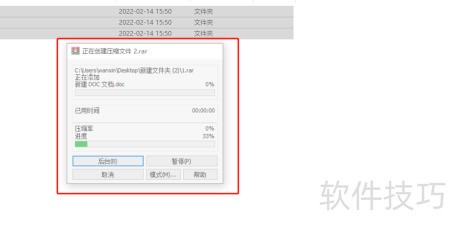 5、 打开界面后可见文件正在压缩。