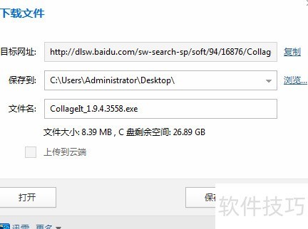 1、 在百度软件中心搜索并下载CollageIt应用。