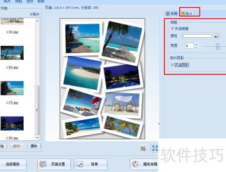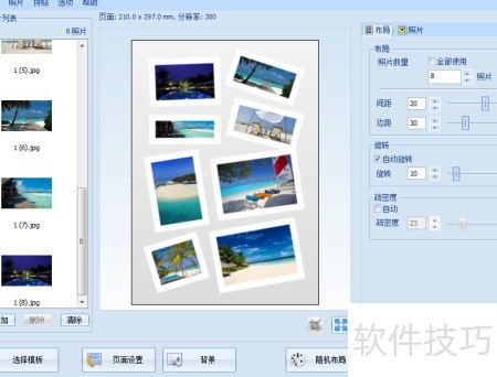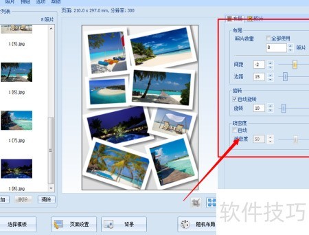 6、 调整布局参数:照片数量、间距、边距与旋转角度。