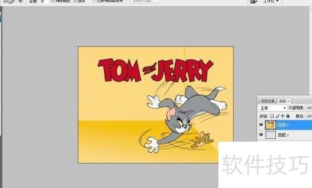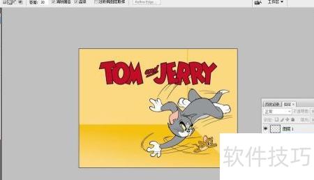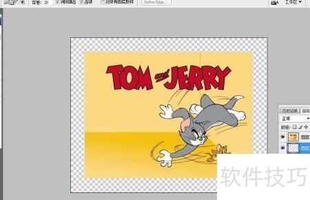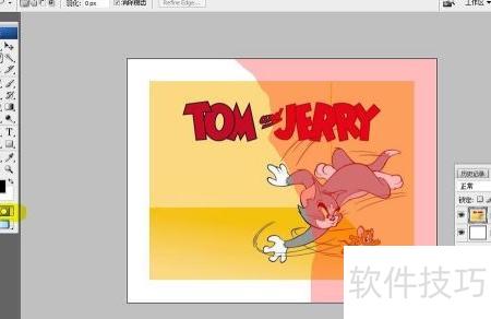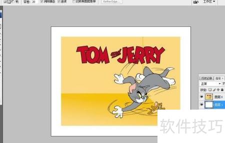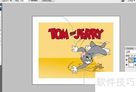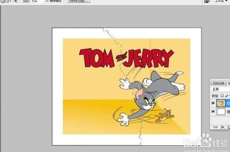 4、 将画布背景设为白色,选用套索工具,在图层0上围绕TOM and JERRY区域进行选区操作,具体如示意图所示。