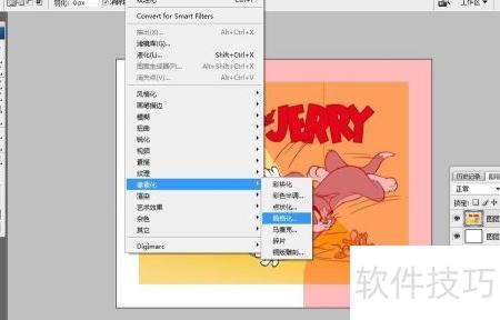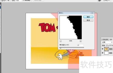5、 使用工具栏中的快速蒙版功能(如黄色荧光标注),进入后选择滤镜中的像素化选项,应用晶格化并调整参数,完成后退出快速蒙版,即可看到清晰的撕纸纹理效果。