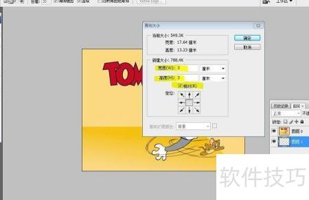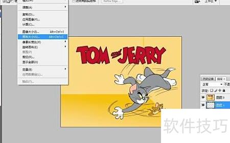 3、 接下来,通过菜单栏的图像选项调整画布尺寸,确保画布略大于图片,具体操作所示。