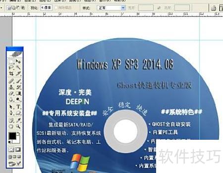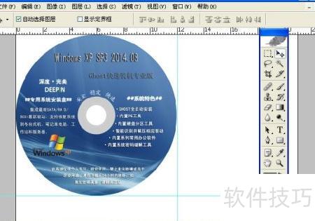 6、 在Photoshop中,将光盘边缘与贴纸边缘的水平和垂直间距设为1.5厘米,调整后效果所示。