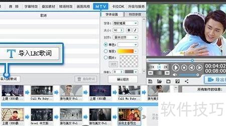 4、 切换至MTV界面,点击添加LRC歌词按钮,即可一键导入LRC歌词字幕。软件将自动渲染出炫酷动感的字幕特效,轻松实现媲美专业MV的视觉效果,让视频字幕更具观赏性和表现力。