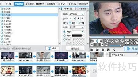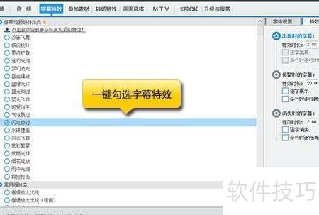 12、 通过点击参数面板中的特效参数和字体设置选项卡,可灵活调整字幕特效的持续时间及字体、大小、颜色等个性化属性。