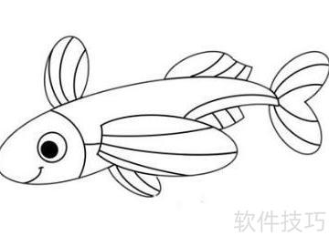 飞鱼虽是海洋生物,却能跃出水面滑翔。今天就让我们动手画一只可爱的卡通飞鱼吧。