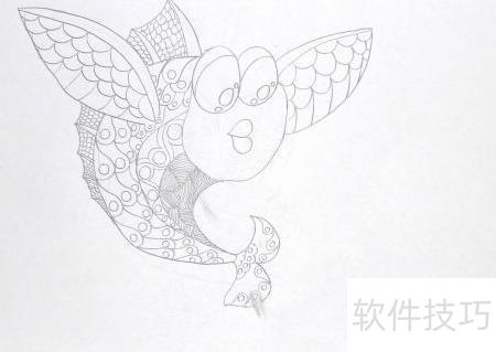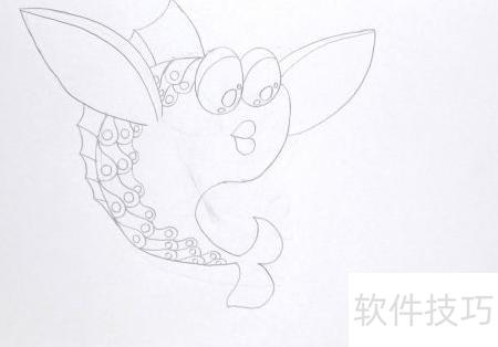 2、 画好飞鱼轮廓后,用弧线、波浪线和圆形等图案为其添加美丽的花纹,丰富整体造型。