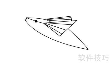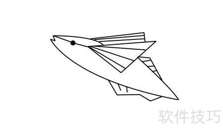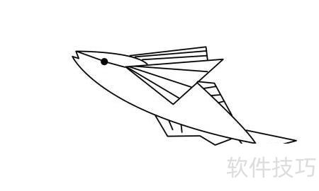 6、 描绘飞鱼尾部线条。
