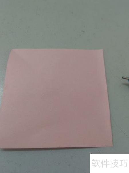 2、 把正方形彩纸的一个角向上折叠,形成三角形。