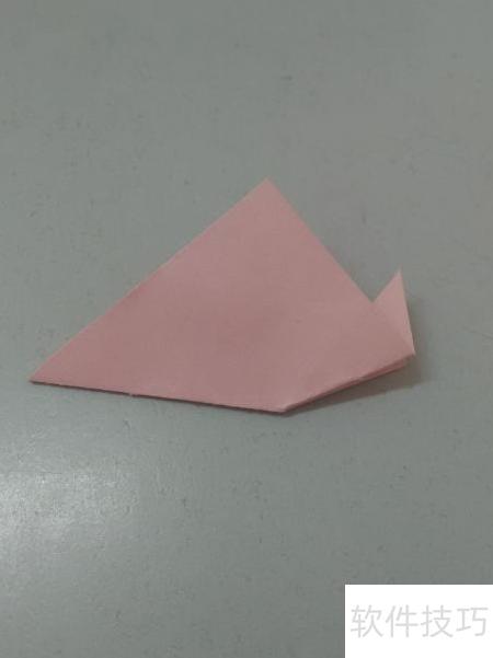 4、 把三角形右边的小角向内折叠,形成飞鱼的尾部。
