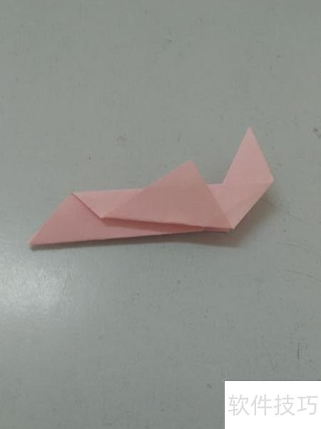 5、 将顶部两角向下折叠,形成飞鱼的双翼。