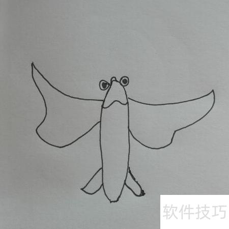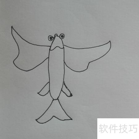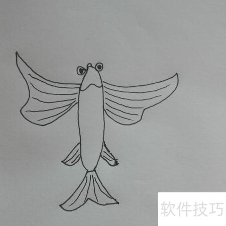 1、 先画出飞鱼的头和身体部分(所示)