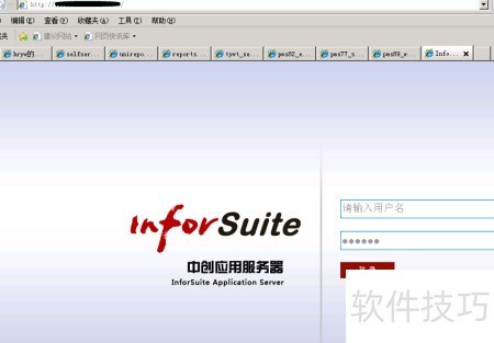 2、 登录InforSuite Server管理平台,以南方电网财务管理系统为例进行巡检操作。启动IE浏览器,在地址栏输入中间件控制台的IP地址及对应服务端口,进入登录界面。由于涉及生产环境真实地址,相关IP信息需做屏蔽处理,确保敏感数据不外泄,后续操作在授权环境下按流程执行。