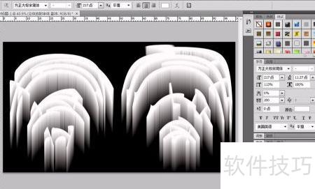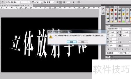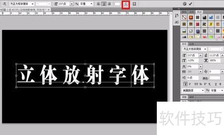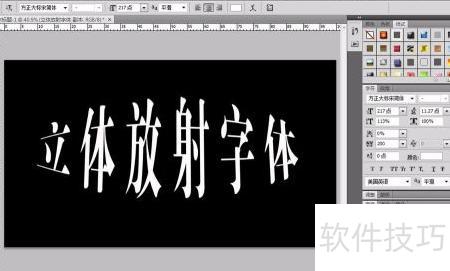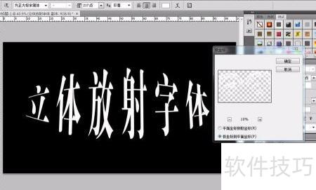 10、 展开先前隐藏的文字图层,选择满意的颜色并完成设置,即可呈现立体放射的字体效果。