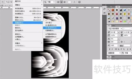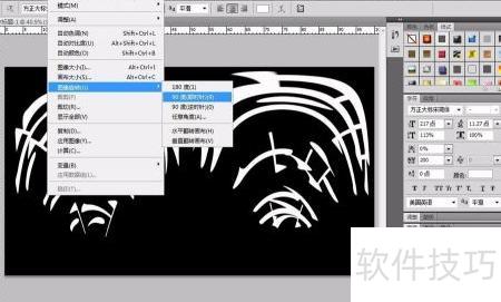 6、 点击图像菜单,选择旋转选项,按顺时针方向旋转90度,查看旋转后的效果。