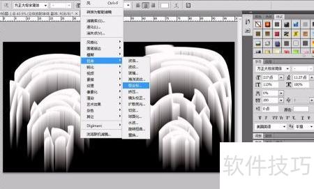 7、 选择滤镜中的风格化功能,点击风选项,在设置中将方向设为从右,单次效果不足,需多次重复应用风效果,直至达到理想状态。