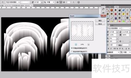 5、 接着在滤镜的扭曲菜单中选择极坐标,确认时会提示将文字图层栅格化,点击确定。随后在弹出的设置窗口中选择极坐标到平面坐标模式,最后点击确定完成操作。