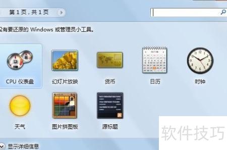 3、 在桌面小工具区域点击还原已安装的Windows桌面小工具,操作所示。