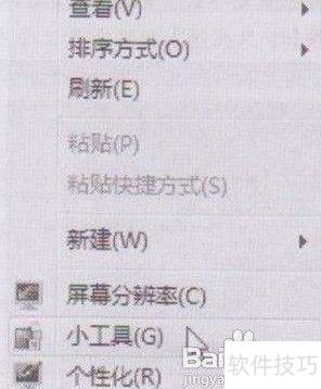 1、 在桌面空白区域点击右键,选择快捷菜单中的小工具选项。