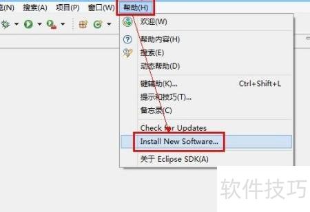 1、 启动Eclipse后,点击菜单栏最右侧的帮助/Help选项,在下拉菜单中选择Install New Software,按照界面提示进行操作即可。