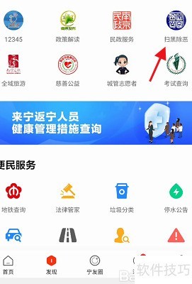 5、 进入发现页,选择民生政务,点击扫黑除恶入口即可。