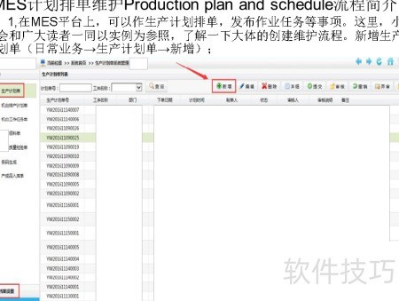 1、 进入生产计划单页面,点击新增按钮创建新的生产计划。