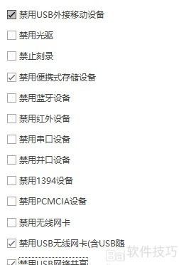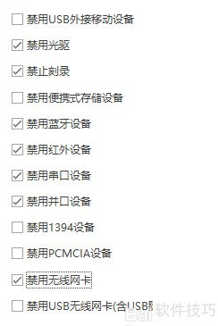 2、 可通过外部管理对员工计算机进行统一配置,如禁用无线网卡、蓝牙、红外及便携存储设备,实现对USB接口的集中管控。仅允许接入鼠标和键盘等必要外设,禁止使用其他USB设备,结合U盘管理策略,有效保障内部信息安全与系统稳定运行。