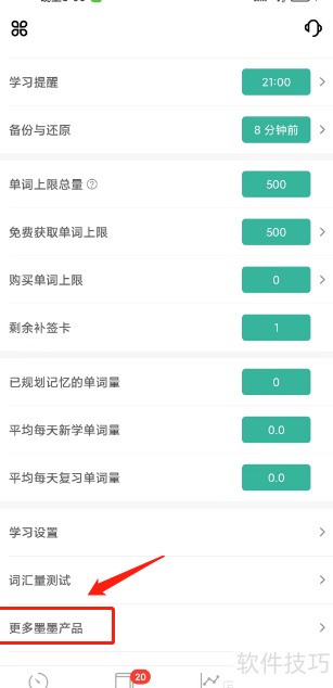 1、 打开墨墨背单词,进入个人页面,选择更多墨墨产品选项。