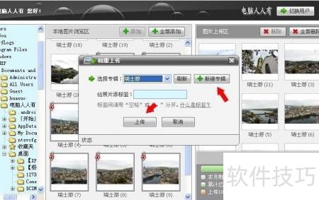8、 上传开始后会出现存储位置设置窗口,可新建图库文件夹,确认信息正确后点击上传按钮完成操作。