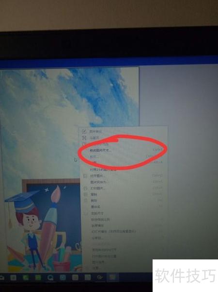 6、 打开图片后右键选择,找到调整尺寸选项并点击即可修改。