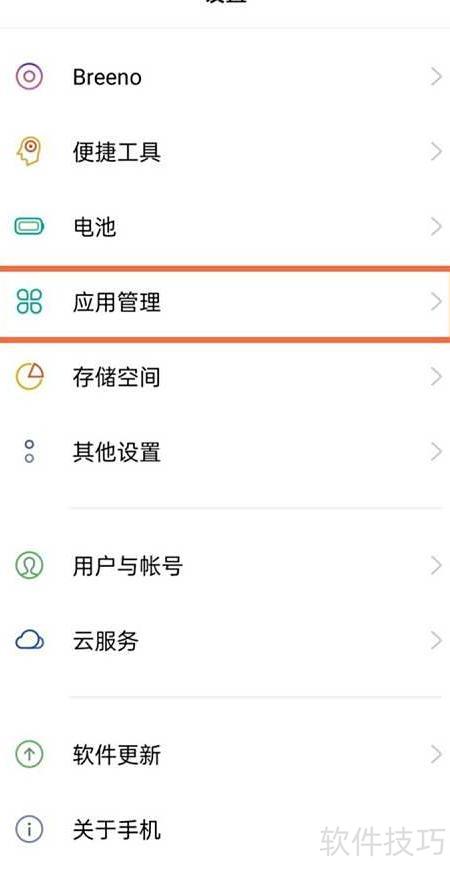 1、 进入手机设置,选择应用管理选项。
