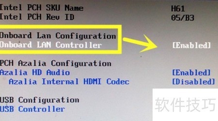11、 板载网卡控制设置,用于启用或禁用主板集成的网络接口功能。