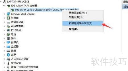 4、 在系列芯片组的下级菜单中,查找扫描检测硬件变更功能选项。