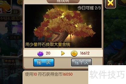 4、 在我叫MT2中,消耗10符石可摇动摇钱树一次,获得大量金币奖励。