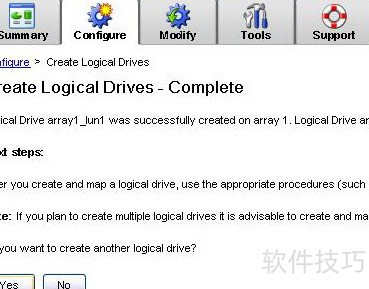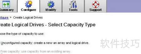 10、 切换至配置选项卡,创建阵列与逻辑单元,并将其映射至服务器,点击创建逻辑驱动器按钮,11所示。