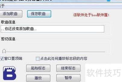 1、 先导入待剪辑的歌曲,软件将自动播放。在需截取片段的开始处点击起始标志,结束位置点击结束标志即可完成设定。