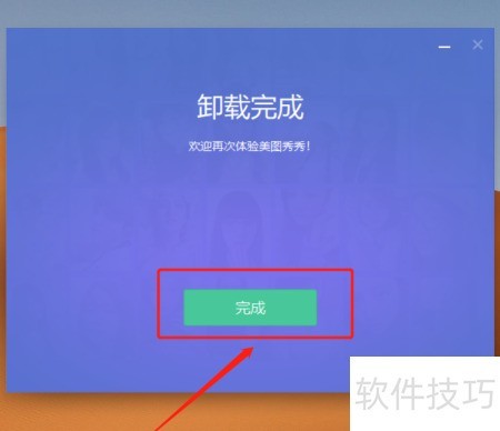 5、 在窗口中点击完成图标即可成功卸载美图秀秀,操作方法所示。