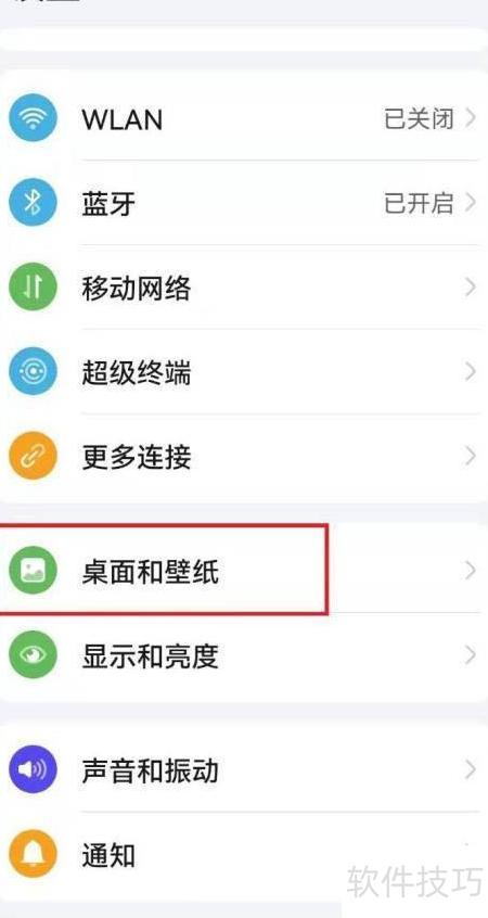 2、 进入桌面与壁纸界面,开启桌面设置功能。