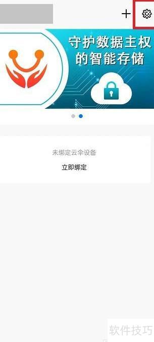2、 打开云伞智能APP,点击右上角的设置图标进入配置页面。